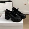 Plateau Dicke Hohe Absätze Damen Mary Jane Schuhe Mode Party Kleidschuhe Damen Outdoor Leder Pumps