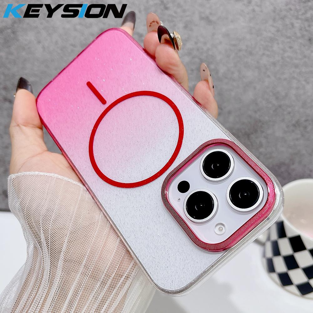 KEYSION Luxuriöse magnetische Handyhülle mit Farbverlauf und Glitzer für MagSafe für iPhone 14 15 16 Pro Max 16e 16 Plus Harte PC Stoßfeste Hülle