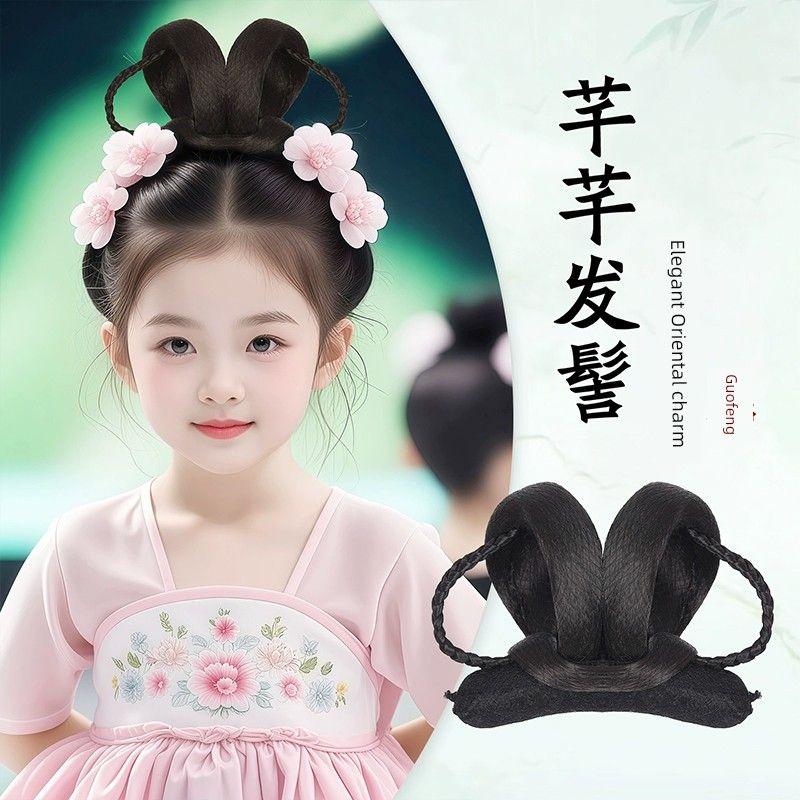 Children's Han Chinese Costume Chignon Chinese Ancient Style Bun Updo Classical Dance Style Costume Headdress Girl Hair Padding