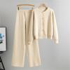 Damen Herbst- und Winter Sportlich Lässig Gestrickter Anzug Mode Cardigan Pullover Weitbeinige Hose Zweiteiliges Set