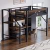 Hochbett Metall 90x200 cm, Korpusschutz, Sicherheitsleiter, Aufbewahrung, großer Platz, robust, Schwarz (ohne Matratze)