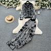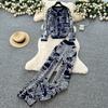 Herbst Winter Damen Designer Vintage Print Strickpullover Laufsteg Zweiteiliges Hosen-Set V-Ausschnitt Strickjacken Oberteile und Elastischer Bund Hosenanzug