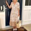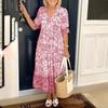 Sommer Kurzarm V-Ausschnitt Kleid Böhmischer Blumendruck Langes Kleid Lässiges Strandkleid für Damen
