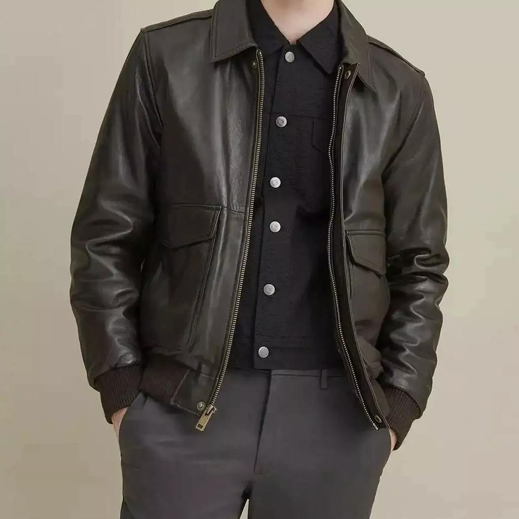 Biker Motorcycle Brown Handmade Genuine Lambskin Soft Leather Men Bomber Jacket