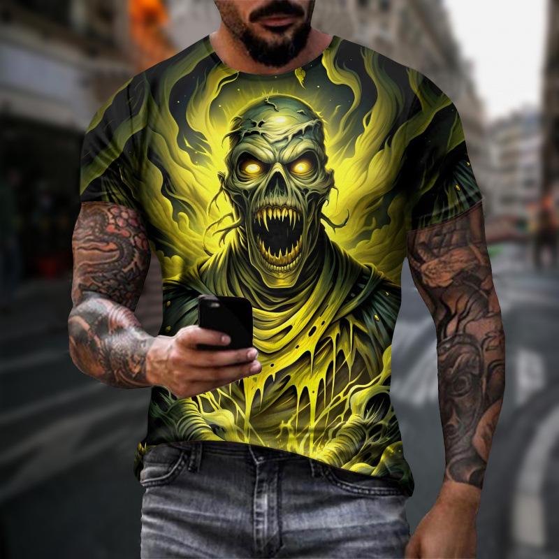 Sommer Rundhals 3D-Druck Lustiges Skelettmuster Top Modische Lässige Kurzarm Herren T-Shirts