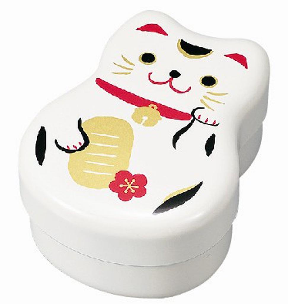 Tatsumiya Lunch White Design Box, Maruko, Two-Tiered, Maneki-neko