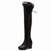 2025 Winter Overknee High Boots Damen Bequeme Keilabsätze Warme Fell Schneestiefel Weibliche Mode Schwarz Weiß Plüschschuhe Mädchen