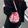 Large Capacity Drawstring Crossbody Bag Pleated Design Hearts Embroidery Handbag Female Fashion