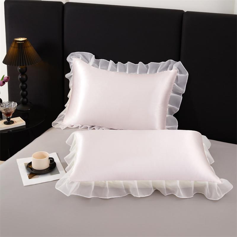 2 pcs Satin Silk Pillowcase with Ruffles 48x74cm Home Decorative Solid Color Pillow Cover for Summer Soft Silky Pillow Sham
