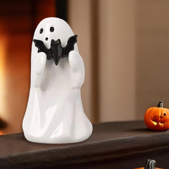 Auffälliges Design: Fallen Sie auf mit dem unverwechselbaren Charme dieser Geisterdekoration, die eine niedliche Kürbis/Fledermaus-haltende Pose und ein bezauberndes Lächeln zeigt.. Seine fesselnde Präsenz wird die Zuschauer sicherlich in ihren Bann ziehen und ihn zu einem idealen Blickfang für jede Gelegenheit machen.