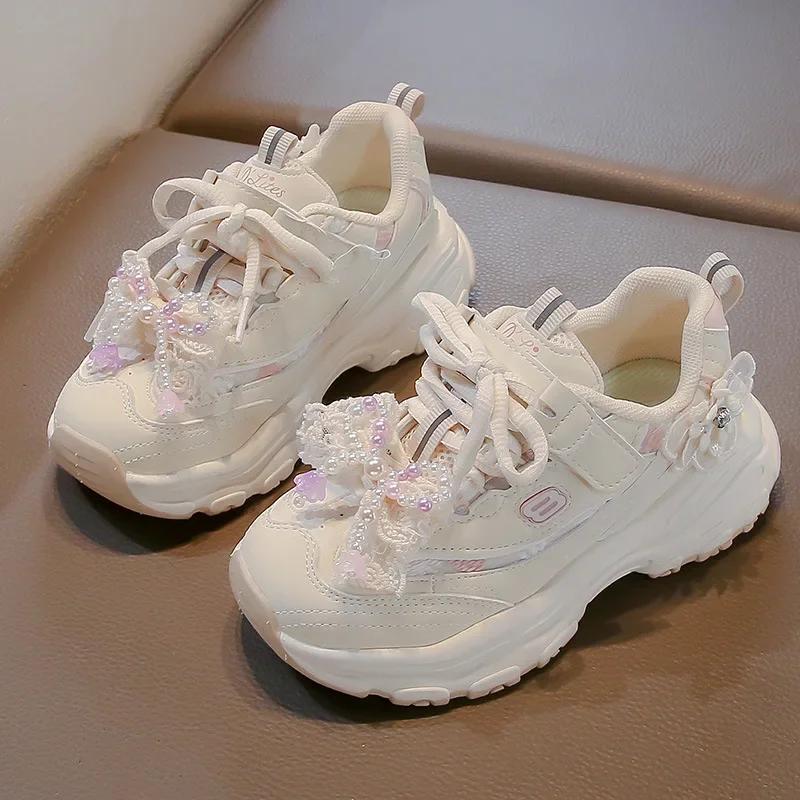 Mädchen Sneakers mit Mesh-Schleife Kinder Prinzessin Schuhe Dicke Weiche Sohle 2025 Neue Mode Kinder Laufschuhe Air Mesh Atmungsaktiv