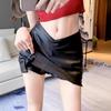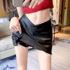 Split PU Leather Skirt Waterproof High Waist A-line Skirt Korean Style Short Mini Skirts Lady
