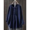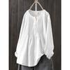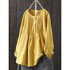 HNXC Loose Cotton and Linen Long-sleeved Women's Pleated O-neck Women's Plus-size Shirt