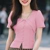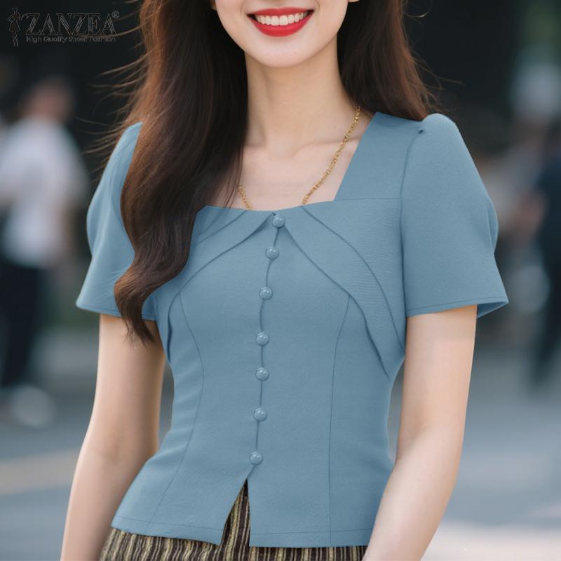 ZANZEA Damen Sommer Casual Kurzarm Slim Bluse mit quadratischem Ausschnitt