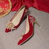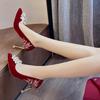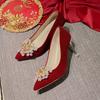Hochzeitsschuhe für Frauen, Bräute, Brautjungfern, Kristallschuhe, Rotes Hochzeitskleid, Feine Absätze, Strasssteine, Damen-High Heels