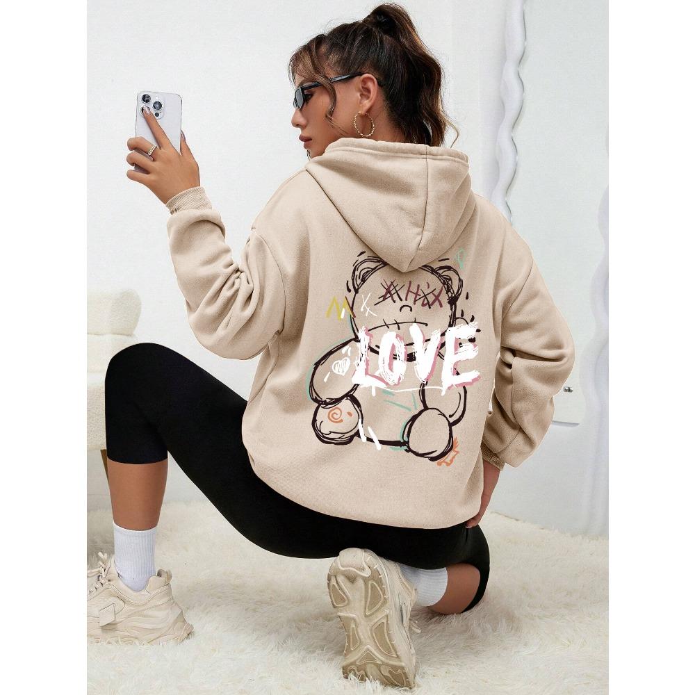 Graffiti Line Bär Einfacher Druck Damen Kapuzenpullover Harajuku S-Xxl Sweatshirt Mode Lässig Street Kapuze Herbst Warm Streetwear Frauen