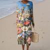 Damenmode Lässig Langarm Retro-Print Rundhals Tasche Elegant Temperament Kleid