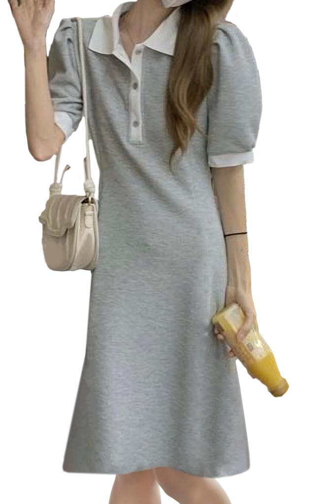 Monoa Kurzarm Puffärmel Knopfkragen Mini Leicht und Größe 2XL Damen Knielanges Zweifarbiges Kleid, Schlicht, Grau, (n1627)