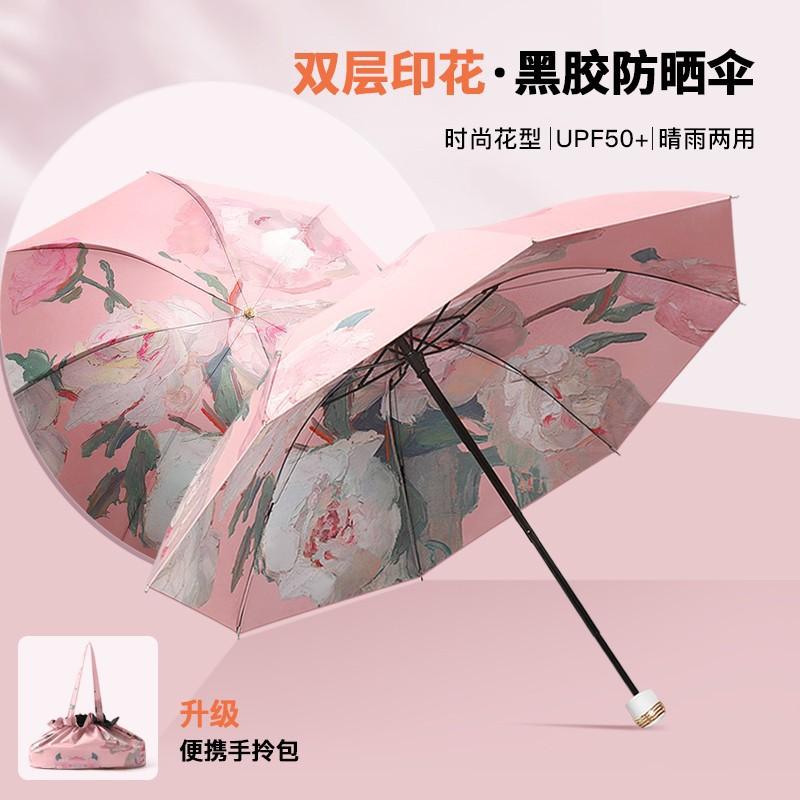 Neuer Doppelschicht-Beutel Faltbarer Schirm Vinyl Sonnenschirm Sonnenschutz UV-Schutz Sonnenschirm Regen- und Sonnenschirm UPF50 +