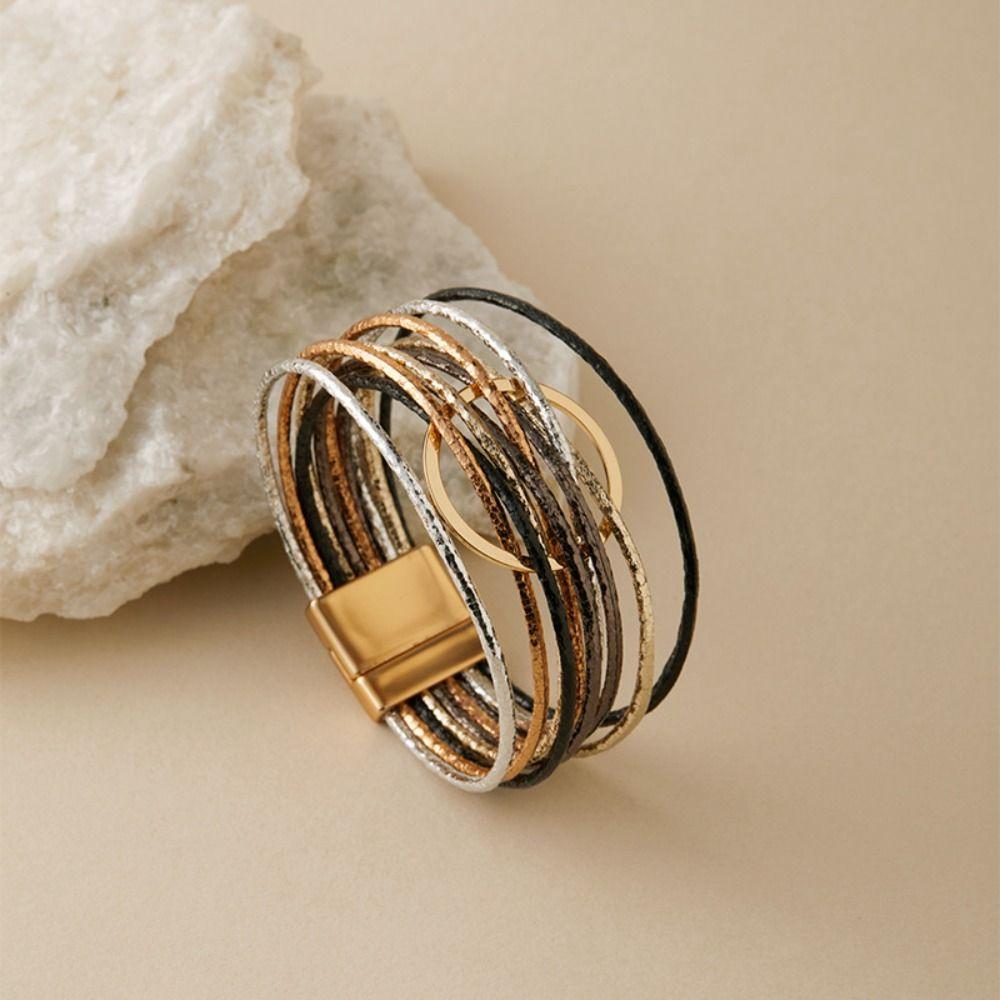 Vintage Leather BraceletS Metal Multilayer Bracelets Elegant Magnetic Snap Bracelet Party