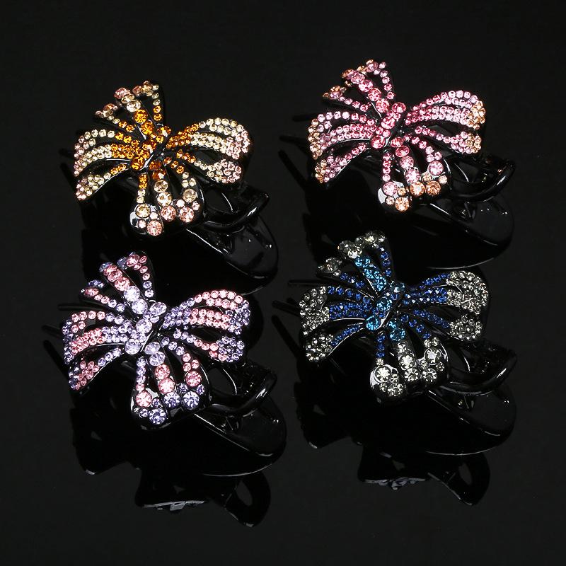 Koreanische Elegante Strass Schleife Haarspange - Drei-Zahn Entenschnabel für Hochsteckfrisuren