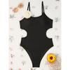 Black Swimwear Women Sexy Halter 3D Floral Slim Tummy Control One Piece Swimsuit Beach Bathing Suit
