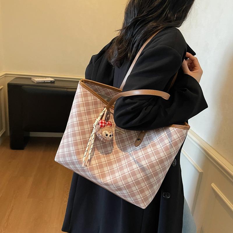New women's bag commuting to work large capacity new retro fashion plaid commuting shoulder tote bag