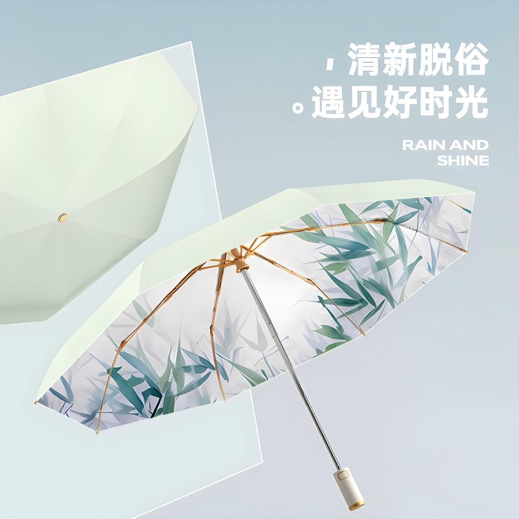 Sonnenschirm doppellagig automatisch goldener Stab Faltregenschirm Gefühl Sonnenschutz Sonnenschirm Farbkleber UV-Schutz Wetter und Regen Zweizweck