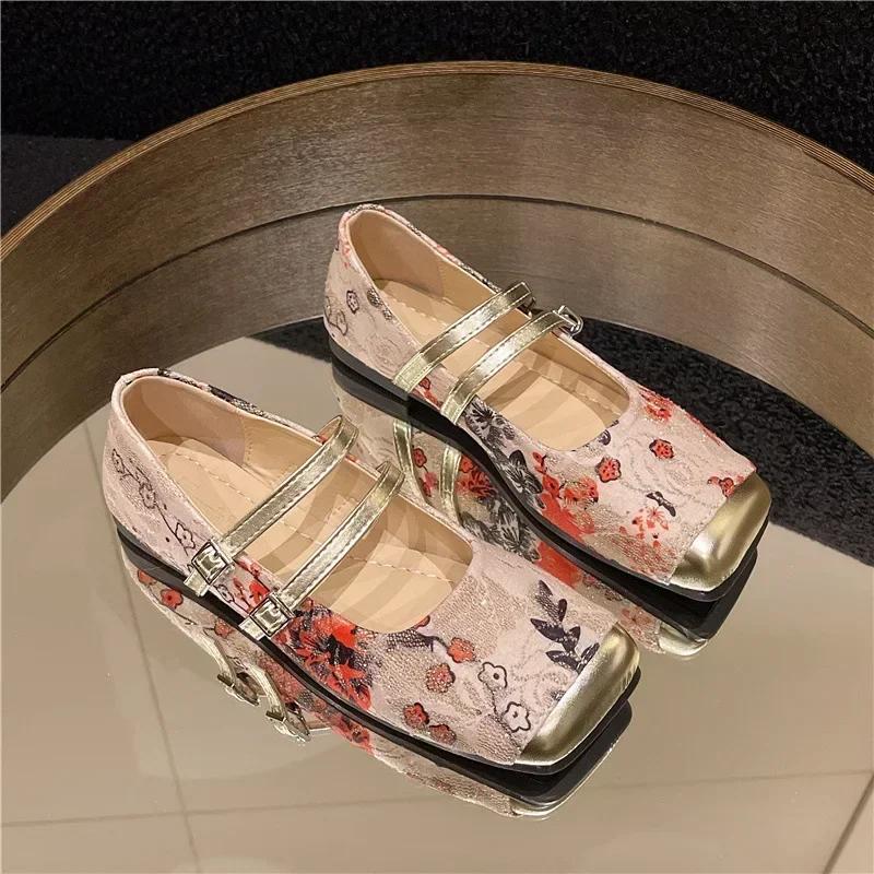 Fashion Women's Flat Shoes Square Toe Print Casual Shoes Ladies Breathable Outdoor Soft Mary Jane Shoes 2025 Zapatos De Mujer