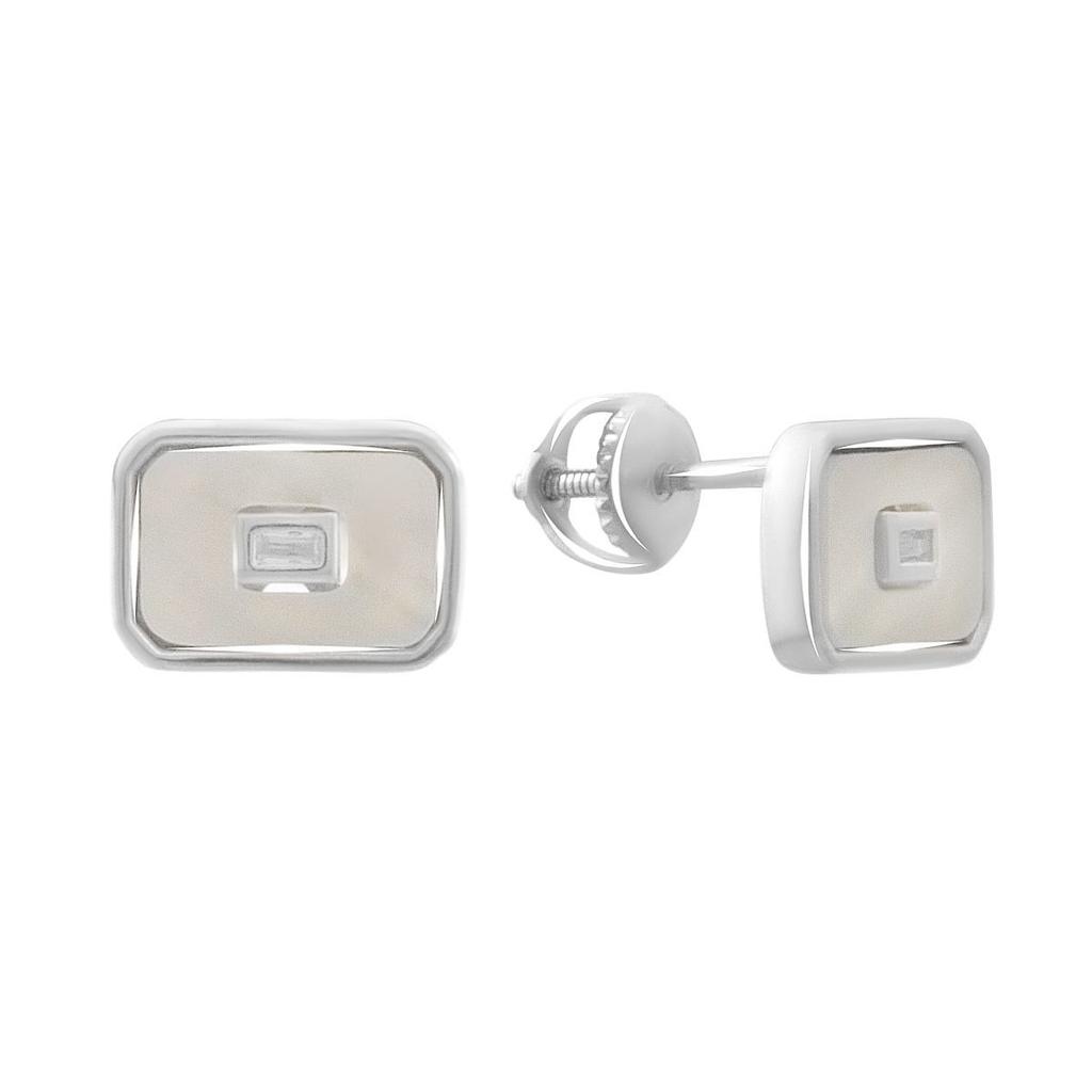 Серебряные серьги с натуральным перламутром, фианитами (2184690)