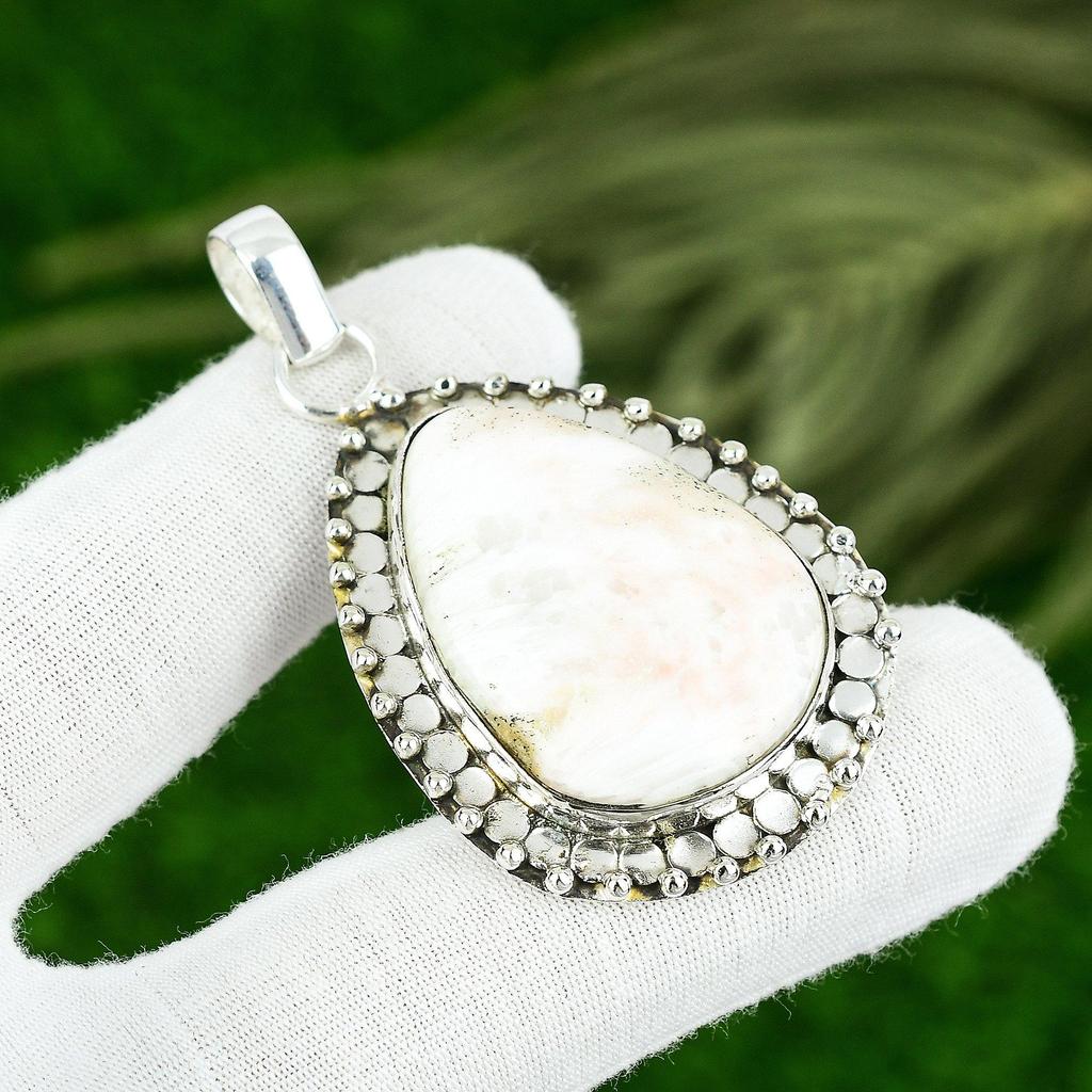 Pear Natural Scolecite Boho Birthday Mother Bezel New Pendant Sterling Silver