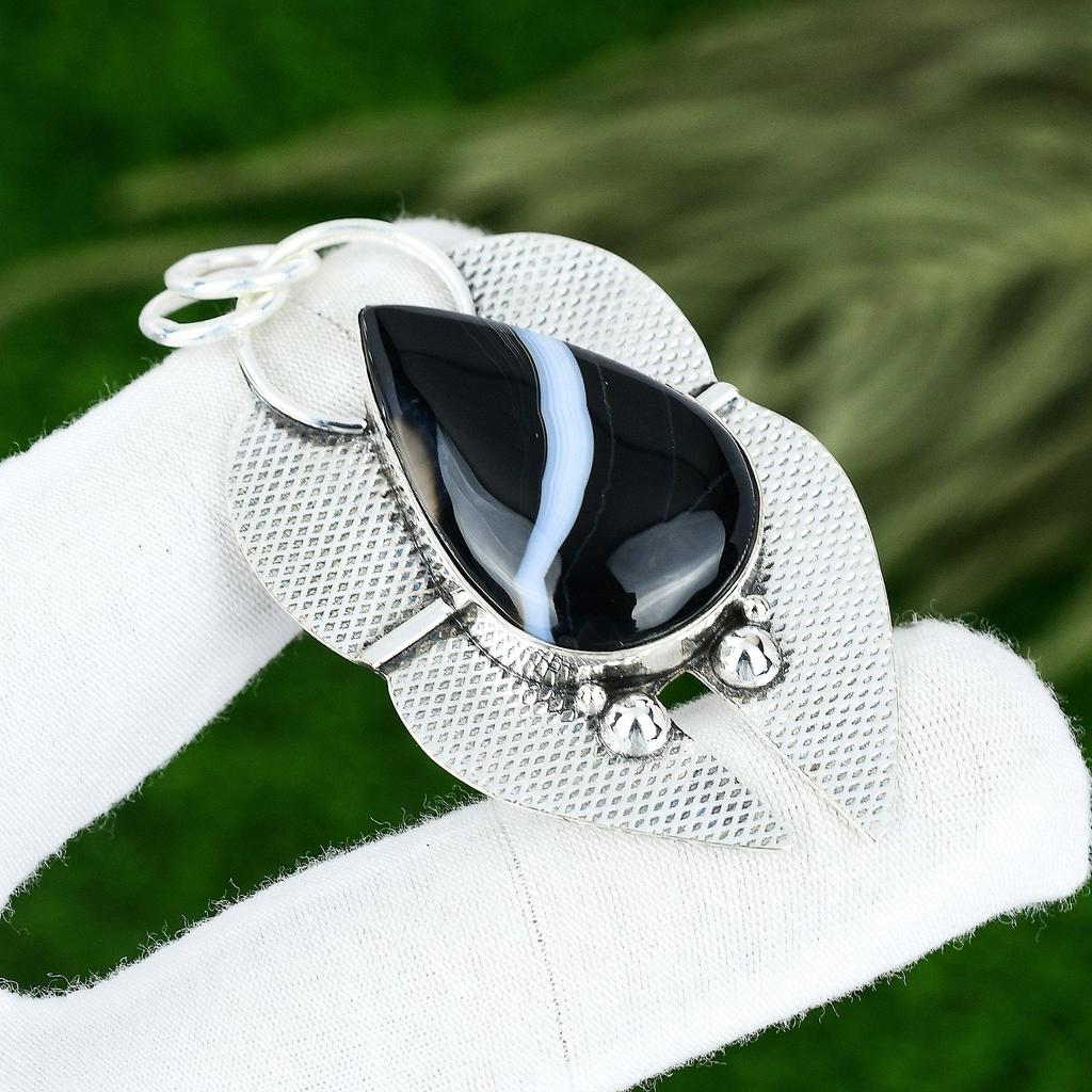 Natürlicher Sardonyx Edelstein Anhänger Handgefertigt 925 Sterling Silber Indischer Schmuck