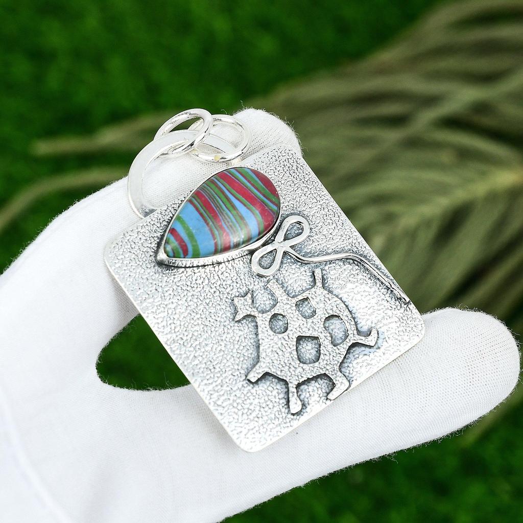 Friendship Day Sale Natural Rainbow Calsilica Sterling Silver Boho New Pendant
