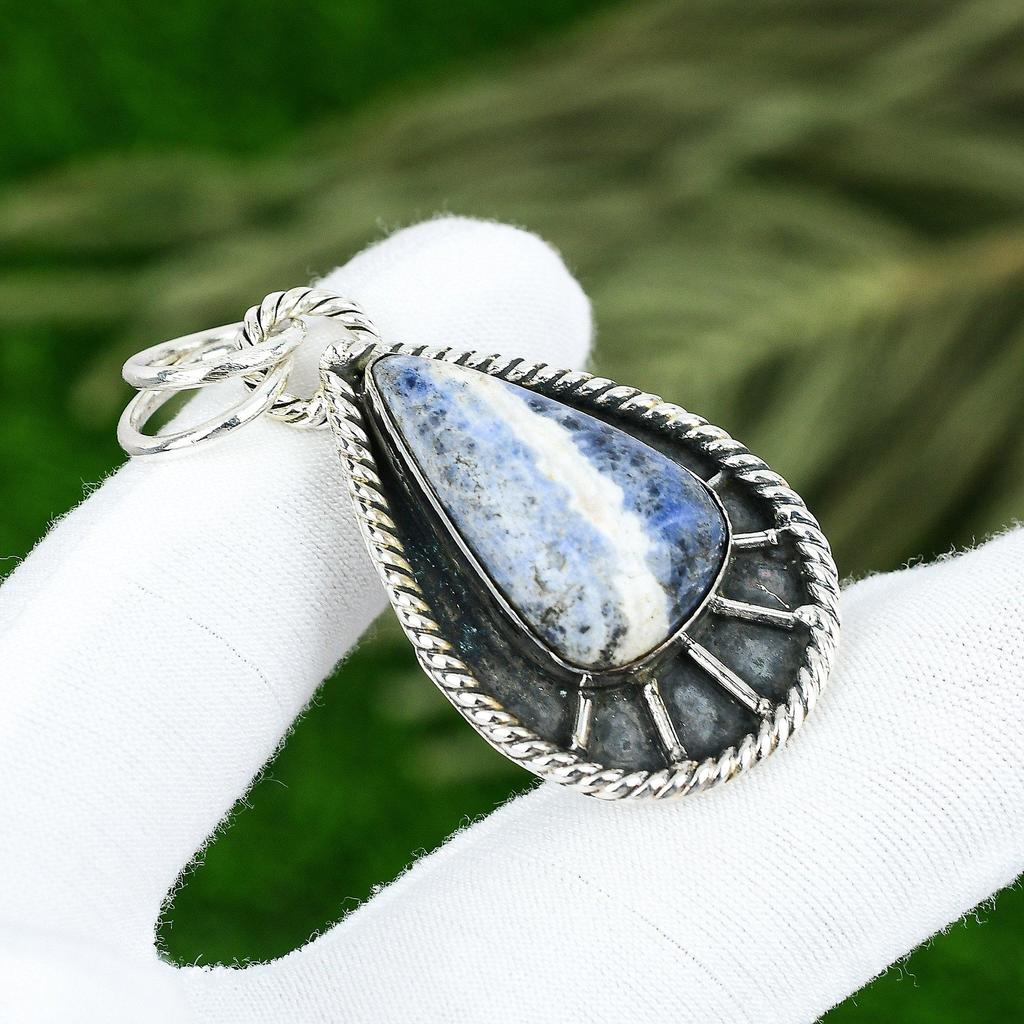 Natürlicher Sodalith Edelstein Anhänger Handgefertigt 925 Sterling Silber Indischer Schmuck