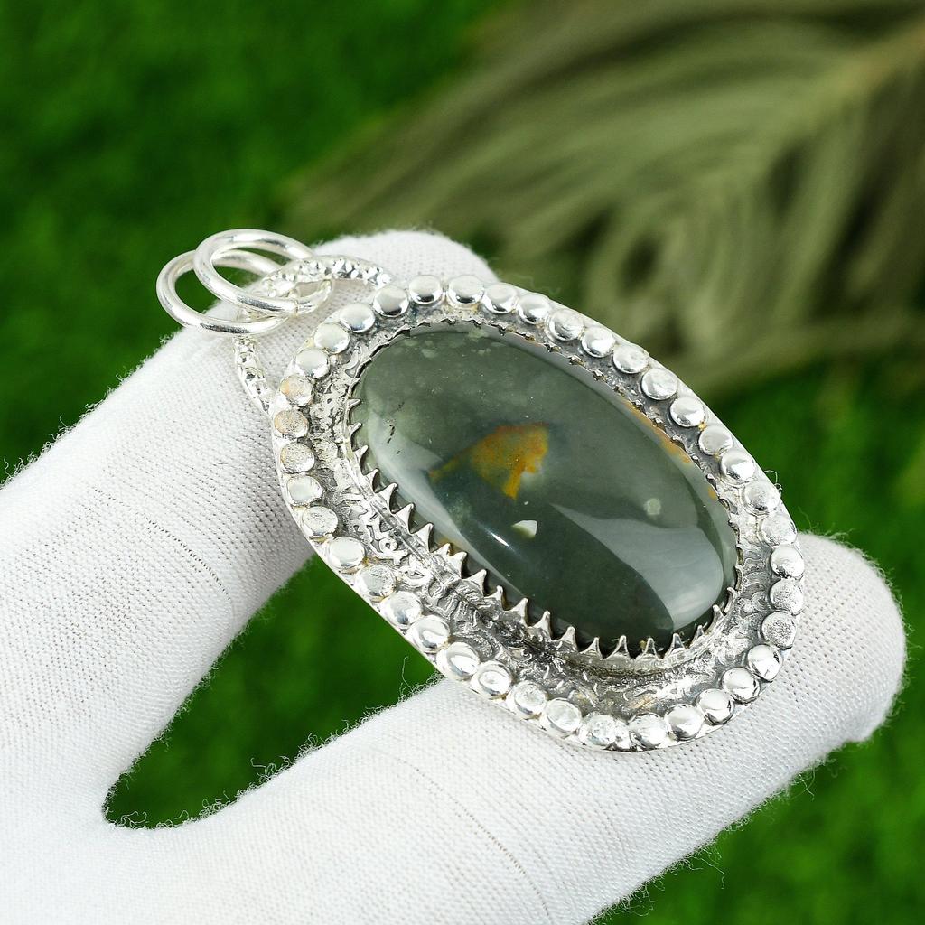 Geschenk für Sie 925 Sterlingsilber Natürlicher Polychromer Jaspis Edelstein Anhänger
