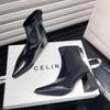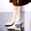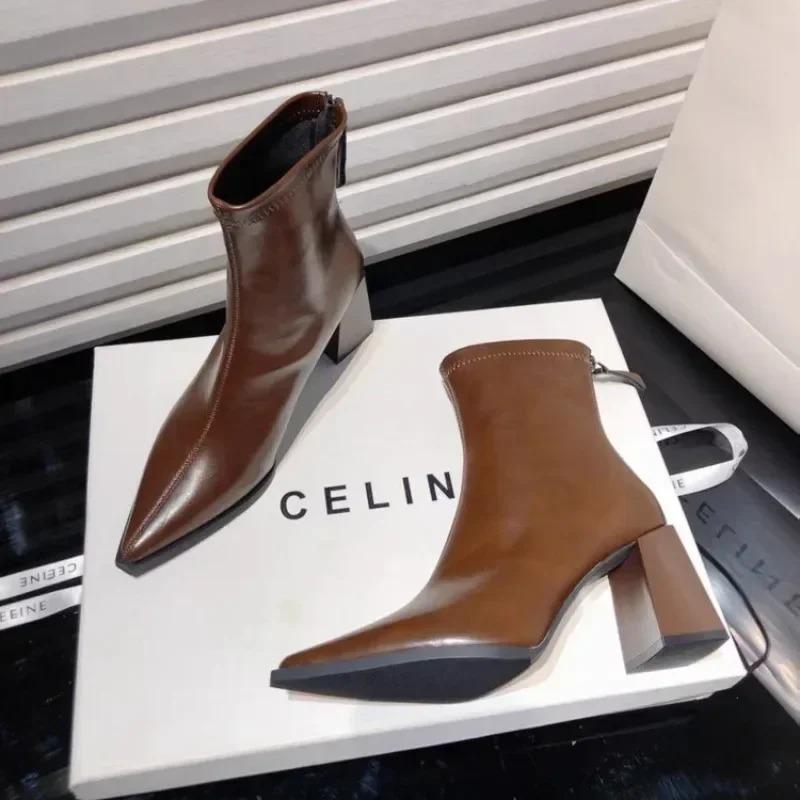New High Heels Ladies Shoes 2025 Fashion Zipper Women's Boots Pointed Toe Solid Short Barrel Chunky Heels Boots Botas De Mujer