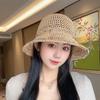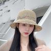 Min standard woven breathable straw hat women's travel sunscreen bucket hat showing face small beach vacation sun hat