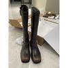 Hand-polished old retro short boots women's big tube circumference Spice girl style belt buckle knight boots tide