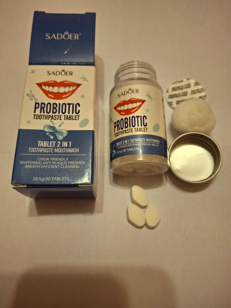 Zahnpasta in Tablettenform, ein interessantes Format von Zahnpasta. Vor Gebrauch muss die Tablette gekaut werden. Die Tabletten sind weiß, schäumen gut, erfrischen den Atem und reinigen die Zähne effektiv. Ich empfehle sie.