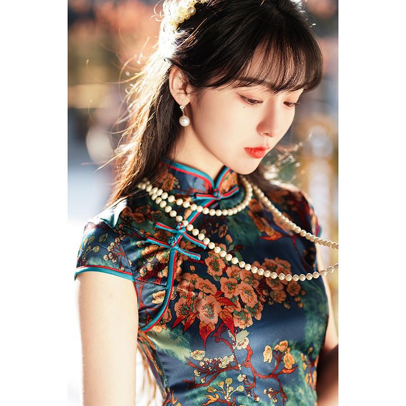 Dieses Sommerkleid verbindet nahtlos traditionellen chinesischen Stil mit einem modernen Twist und bietet eine schmeichelhafte Silhouette für junge Frauen.. Gefertigt aus leichtem, atmungsaktivem Stoff, verfügt es über einen klassischen hohen Kragen und ein figurbetontes Design, das die Eleganz und Anmut des Trägers hervorhebt.. Die vom Retro-Stil inspirierten Muster verleihen einen Hauch von Nostalgie, während die kurzen Ärmel und der knielange Schnitt für Komfort an wärmeren Tagen sorgen.. Perfekt sowohl für lässige Ausflüge als auch für besondere Anlässe, verkörpert dieses Kleid den zeitlosen Charme des Cheongsams mit einem zeitgenössischen Gefühl.