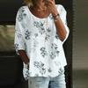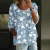 Damen Casual Mode Dreiviertelarm Locker Rundhals Floral Bedrucktes Oberteil