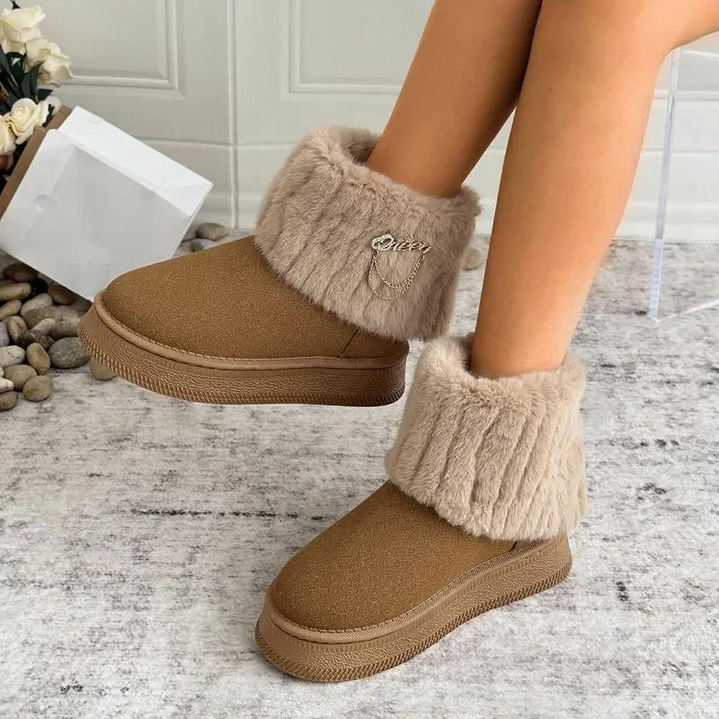 2024 Marke Damen Schuhe Slipper Damen Stiefel Mode Metalldekoration Alltagsstiefel Damen Winter Die Kette Übergröße Schneestiefel