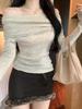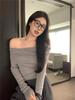 Strickpullover mit schulterfreiem Ausschnitt: Schmale Passform, Langärmlig, Sanfter Stil