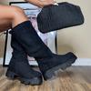 Schicke Damen Langstiefel Markendesign Frottee Kniehohe Stiefeletten Damen Dicke Sohle Rosa Grün Botas Ton in Ton