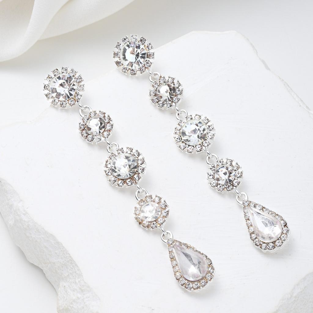 Neue amerikanische Retro-Ohrringe vielseitige lange Ohrringe mit Fransen besetzt mit weißem Kristall Wassertropfen Ohrstecker weiblich Ins vielseitig