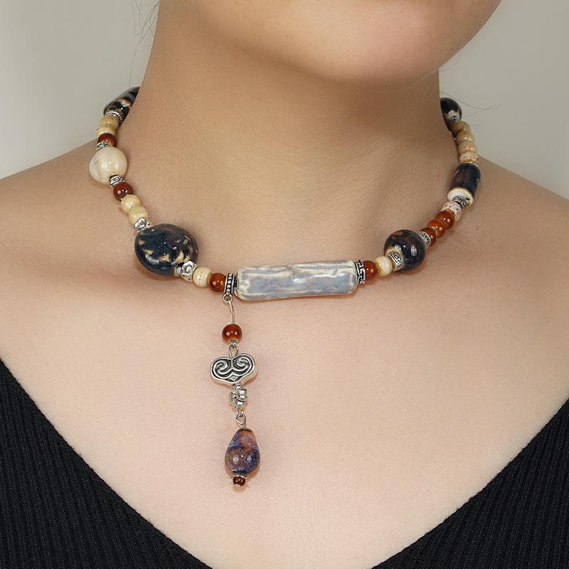 Neue chinesische Art Keramik Schlüsselbeinkette Damen einfach Nische High-End-Gefühl Sommer Retro literarisch und vielseitig Halsketten-Accessoires