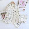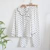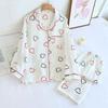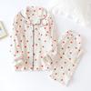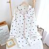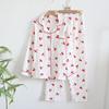 Herbst Damen Reiner Baumwollgaze Langarm Dünner Krepp Sommer Süß Locker Pyjama Loungewear Zweiteiliges Set