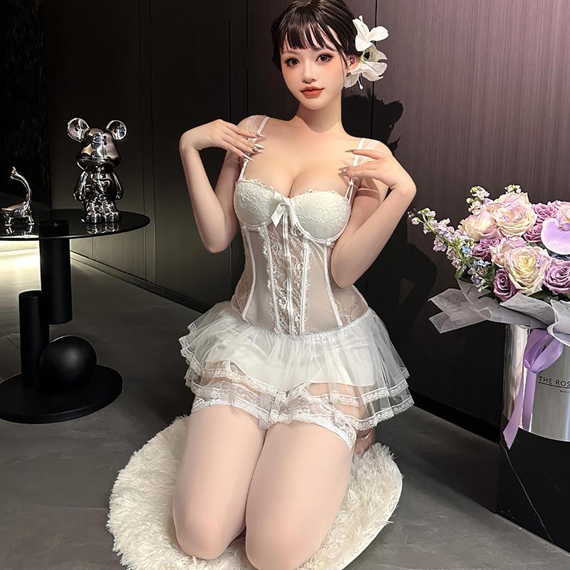 Shi Meisha: Sexy mesh perspective temptation chest pad steel ring gathering slim nightdress sexy underwear women's uniform