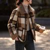 Mantel für Damen Winter Vintage Kariert Verdickt Lässig Übergroß Doppellagig Windjacke