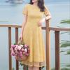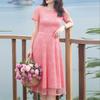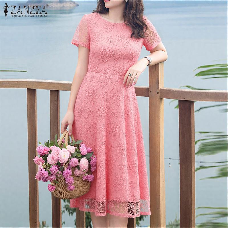 ZANZEA Damen Lässig Rundhals Kurzarm Sommer Patchwork Spitzenkleid